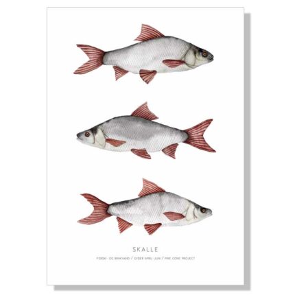 Alle plakater med fisk er trykt på et 170 gram glansfuldt papir og er overfladebehandlet. Derfor er fiskeplakaterne ikke så sarte overfor snavs og fugt.