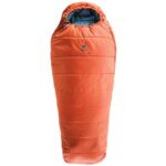 Sovepose junior Lækker kvalitetssovepose med fiberfyld i orange fra Deuter. Starlight Pro soveposen kan forlænges fra 130 cm. til 170 cm., hvormed det er muligt at bruge soveposen i længere tid, i takt med at barnet vokser. De ekstra centimeter kan frigøres med en børnevenlig lynlås. Soveposen er i 2-lags thermokonstruktion med High-Loft fiberfyld og fleece. Soveposen har inderlomme og hætte med snøre. Soveposen er udformet i et mumiesnit, hvilket betyder at soveposen er bredest øverst og bliver smallere ned mod fødderne. Pasformen sikrer at barnet hurtigere kan varme soveposen op, og undgår unødigt varmespild i løbet af natten. Posen er fremstillet i nylon og yderlaget afviser effektivt fugt og snavs, grundet en PFC-fri imprægnering på ydersiden af soveposen. Anslået komforttemperatur på +5°C.