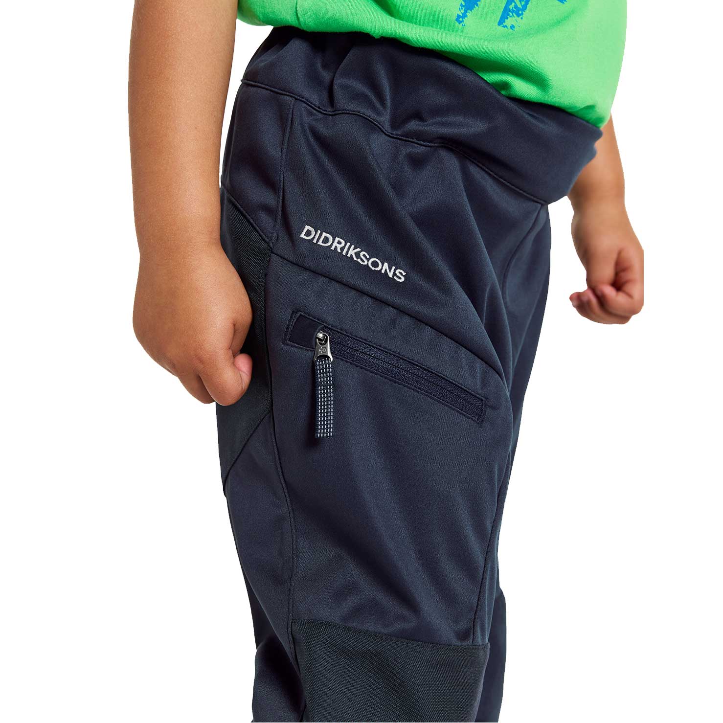 Lövet softshellbukser fra Didriksons i lette og behagelige materialer med stræk og elastisk taljebånd. Bukserne er vind- og vandafvisende og er forsynet med forstærkninger på bagdel og knæ. Bukserne er således perfekte til naturglade børn. Specifikationer: Materiale: Polyester, polyamid. Vandafvisende Lynlåsåbning med kile ned ad benene Talje med elastisk, justerbart bælte Elastisk talje