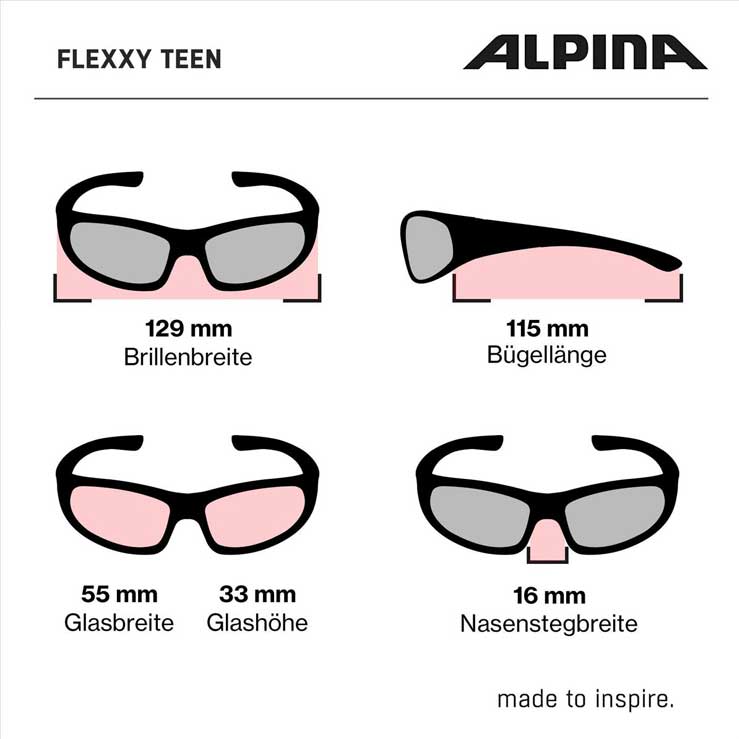 Alpina Flexxy Teen Flexxy Tenne brillen er en flot og robust brille tiltænkt børn i alderen ni til tolv år. Takket være brillens fleksibilitet kan de tilpasses ansigtet og er derfor særdeles komfortable at have på. Flexxy Teen er udstyret med stødresistente keramiske linser, der tilbyder 100% UV-beskyttelse. Specifikationer: Vægt: 18 gram Ideel bredde til børn i alderen otte til tolv år. 100% UV-A, -B & -C beskyttelse.