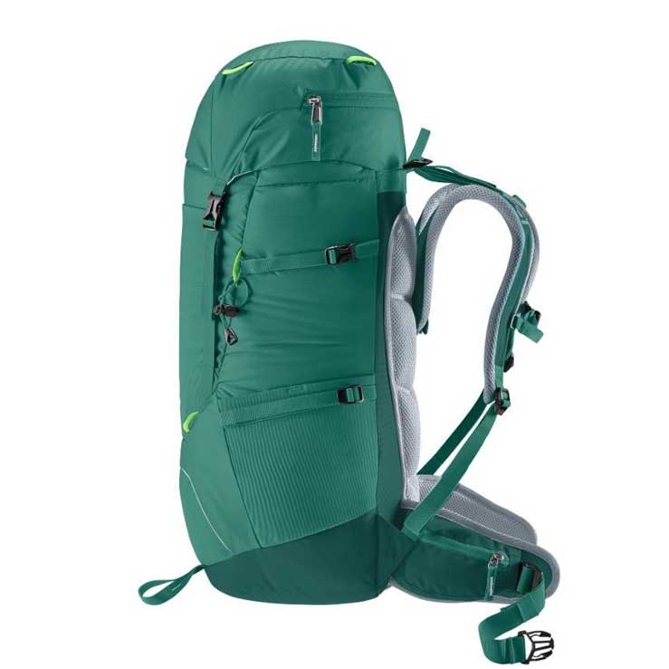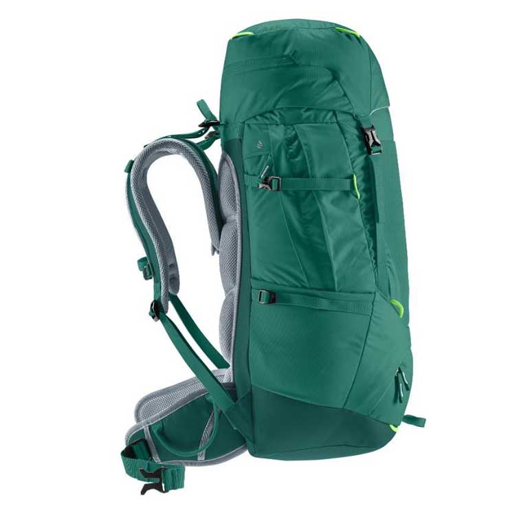 Deuter Fox 40 vandrerygsæk til børn Fox 40 fra Deuter er en kvalitetsstærk vandrerygsæk til børn. Rygsækken har en kapacitet på 40 liter og er således velegnet til børn fra ca. 10 år. De justerbare bæreseler er forsynet med god polstring, samt en brystrem der sikrer, at rygsækken sidder stramt og behageligt på ryggen. Hoftebæltet har praktiske detaljer, såsom en lomme med lynlås samt en udstyrsløkke. Rygsækkens bæresystem (VariQuick) har god polstring og en ventilationskanal på midten. Ryglængden kan justeres for optimal anvendelse. På Fox 40 rygsækken finder du flere kompressionsremme, så rygsækken kan strammes ind og indholdet komprimeres. Dertil har rygsækken holder til eksempelvis vandrestave, ligesom der er strækbar sidelomme til drikkedunken. Indvendigt har rygsækken plads til et drikkesystem på tre liter. Og der er udformet et specifikt rum i bunden til soveposen med separat åbning. Specifikationer: Til børn fra 10 år Kapacitet: 40 liter Mål: 66x28x24 cm Vægt: 1330 gram Plads til drikkesystem på 3 liter Justerbar ryglængde Rum til sovepose Ventilation VariQuick Polstrede seler og justerbar brystrem Topstrammere Polstret hoftebælte Lomme med lynlås Udstyrsløkke Kompressionsremme Holder til vandrestave Udstyrsløkker Sidelomme til drikkedunk Toplåg med lomme Soveposerum