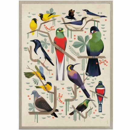Havens fugle – naturplakat – 40 arter – 70×100 cm (199 kr.) + liste/ophængsøje