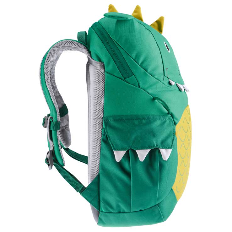 Rygsæk til børnehave Børnehavetasken vil for mange børn være den første taske, de har. Derfor vil det som oftest være forbundet med stor stolthed og entusiasme hos dit barn, når det drager afsted med rygsækken pakket for første gang. Børnehaverygsæk med høj komfort Børnehaverygsækken fra Kikki er udfærdiget i et smart og legefyldt dinosauer design og er tiltænkt børn i børnehavealderen, børn fra +3 år. Den har et stort rummeligt 8 liters hovedrum med store sidelommer med stretch. Rygsækken har en blød rygpolstring og S-formede skulderstropper med Soft-Edge finish som skaber høj bærekomfort. Miljøvenlig børnerygsæk Foruden at børnerygsækken er udfærdiget i særdeles slidstærkt materiale, så er den tillige PFC-fri og af genbrugsstof. Specifikationer Vægt: 310 g Volume: 8 liters Dimensions 35 / 20 / 17 cm