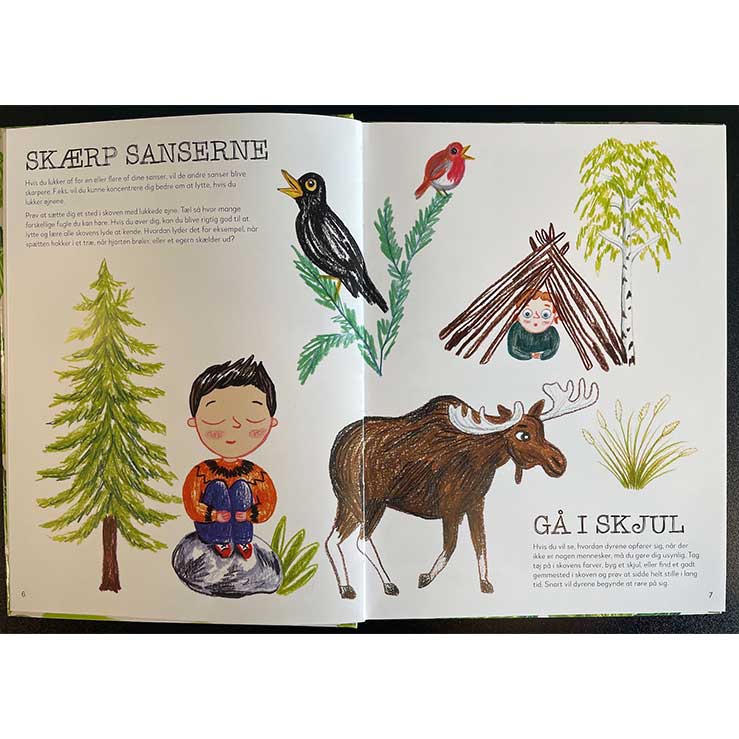 Kom med ud i naturen Hvis I elsker natur, så er denne bog utvivlsomt et hit. Bogen indeholder en masse interessante emner om eksempelvis at bygge en undervandskikkert, sporfælde, find vej med mos som kompas, filetering af fisk, pilefløjte og meget mere. Bogen er henvendt specifikt til børn og er skrevet i et letforståeligt sprog med talrige illustrationer, billeder og sjove fakta.