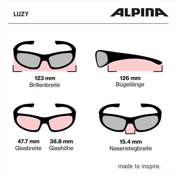 Alpina Luzy briller Alpina Luzy brillen kommer bl.a. i mere feminine farver. Brillen vejer blot 18 gram og er derfor særdeles lette og behagelige at have på. Brillelinserne er noget nær umulige at ødelække og har naturligvis 100% UV-beskyttelse. En smart brille til fritidsaktiviteter og isspisning ved stranden. Specifikationer: Vægt: 18 gram Stel materiale: Nylon, thermoplastic rubber (TPR)