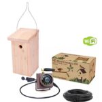 Med et WiFi kamera har du mulighed for at følge mejsefamilien helt tæt på – fra æggene lægges og ungerne opfostres af arbejdsomme forældre. Og indtil fugleungerne en dag, med et enkelt bask med vingerne, pludselig er fløjet fra reden. Som noget nyt har kameraet WiFi, så du kan streame billedet i 1080p live på alle dine enheder, fx. mobil, tablet, computer o.lign. Alle kan se med, uanset hvor man er. Billedet er i farver, og kameraet har mikrofon, night vision LED, og der medfølger en gratis app, hvormed du kan blive adviseret med beskeder, når der er aktivitet foran kameraet. Kameraet er tilmed 100% vandtæt, og kan således eksempelvis monteres på et foderbræt, hvor kameraet uden problemer kan modstå vind og vejr. Fuglekassen leveres med monteret kamera. Til kameraet følger: Vandtæt strømkabel 10 meter DC12V power adaptor Ramme og skruer til montering af kamera i fuglekasse Specialfremstillet mejsekasse (28mm) til kamera: Danskproduceret mejsekasse i høj kvalitet, fremstillet af træ fra bæredygtig skovbrug. Mejsekassen er konstrueret med ekstra højde over indgangshullet, hvilket gør den ideel til at rumme et kamera. Kassens front kan nemt åbnes ved at fjerne en split i siden. Der er indbygget dræn i bunden, samt opklatringsriller indvendigt i kassen. Passer bedst til: blåmejse topmejse sumpmejse sortmejse Til fuglekassen hører: 1. stk. rustfri bøjle til ophæng. 1. stk. aluminium søm til at fastgøre på træ. 1. stk. rustfri split. Kassen er produceret af Greentools.