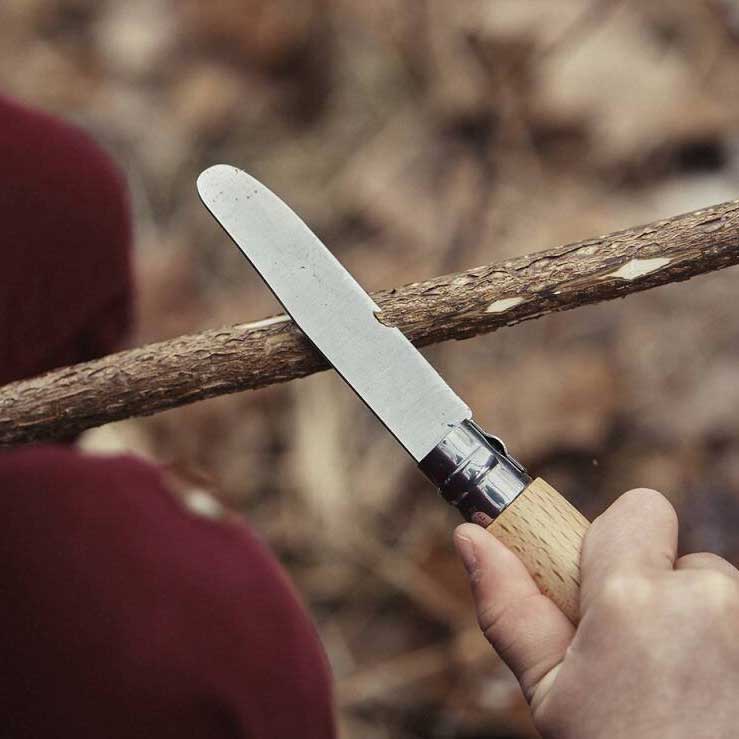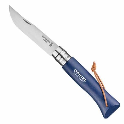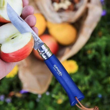 Børnekniv fra Opinel Smart børnekniv fra Opinel. Kniven kan foldes sammen og er derfor nem og sikker at medbringe – eksempelvis i lommen – når nye eventyr kalder. My First Opinel har et blad på 8 cm. i rustfri stål. Kniven har afrundet spids så man ikke kan stikke sig på den. Kniven er udstyret med en sikkerhedsring, så der ikke sker uheld med foldefunktionen, uanset om den er åben eller lukket. Skaftet er lavet af bøgetræ og kommer i forskellige farver. Kniven kan slibes. Specifikationer: Fra +4 år Afrundet spids Låsering Længde, total: 16,5 cm. Længde, blad: 8 cm. Vægt : 40 g. Blad: Rustfri stål Skæfte: Bøgetræ
