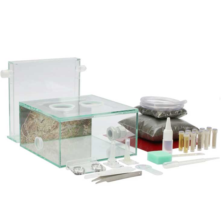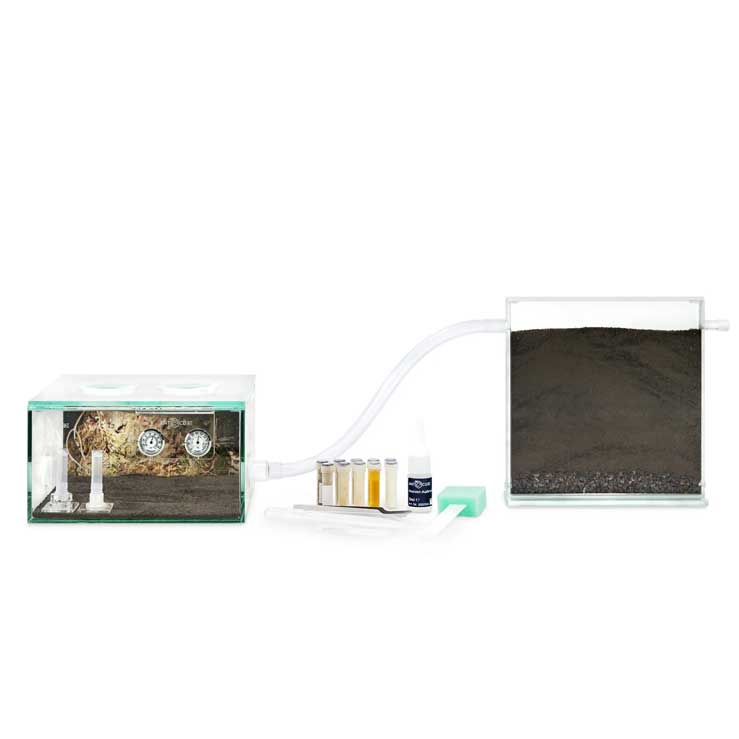 Startsæt til myrer som bor i skovbunden At passe en myrefarm er både fascinerende og lærerigt, og med dette startsæt er det tilmed nemt at komme i gang. Startsættet er velegnet til både børn og voksne, skoler og børnehave. Se video for introduktion. Indhold: 1x ANTCUBE – Arena 20x20x10x10 – flad 1x ramme til myrearena 20×20 1x dækning af myrearena 20×20 4x fastgørelsespunkt til arenaafdækning 1x ANTCUBE – myrefarm – L – 20×20 – stående 1x dækning af myretue 2x Formicarium plug 4mm 1x 0,5 m rør transparent 14/10 mm 1x ANTCUBE – Rød folie 20×20 – selvklæbende 1x Substrat – skov – 1kg 1x Formicarium granulat 200 ml – sort 2x Formicarium plug til 50mm hul 1x Formicarium plug til 27mm hul 1x Formicarium hætte til 16 mm fatning 1x Formicarium-stik til 27 mm boring og 10-16 mm rør – M25 1x Formicarium møtrik M25 – grå 1x drikkedunk 2ml – 360 grader 1x foderdispenser 2ml – doserbar 1x Mini termohygrometer analogt – display – hængende 1x Beskyttelsesolie til beskyttelse mod myrer 10ml 1x pincet fjederstål – bred – blød 1x pincet plastik gennemsigtig 1x Plastpipette 3ml 1x Håndlup – 2x – 30mm 1x Food Mix Set – standard + svamp (11 dele) 1x skumtørrer 150x18x2,5mm 1x Foto bagvæg – skov – 20×10