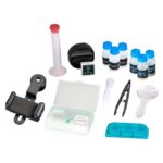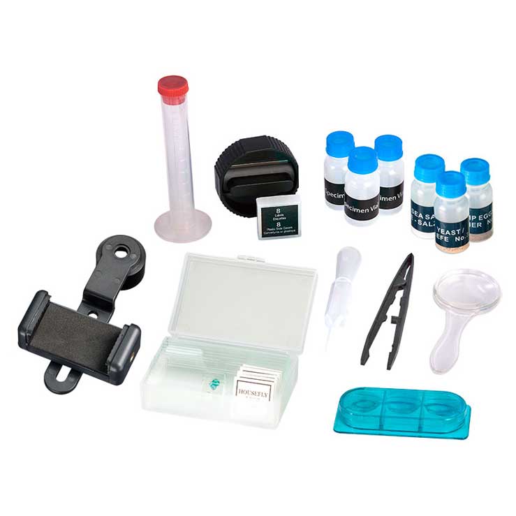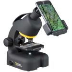 Mikroskop til børn National Geographic Mikroskop 40x-640x er et smart og let anvendeligt mikroskop til børn i alderen +6 år. Mikroskopet er særdeles brugervenligt og giver dermed mulighed for, at børnene hurtigt opbygger en stor fortrolighed med mikroskopet. Børnemikroskopet har en 40x-640x forstørrelse samt 3 roterbare linser, hvormed forstørrelsen kan ændres, alt afhængigt af hvad du kigger på. Dertil har mikroskopet LED lyskilde og smartphone adapter. Med mikroskopet følger en smart adapter hvormed mobilen nemt kan monteres på mikroskopet. Således er det muligt at dokumentere – med billeder og videoer – alle de smukke og underfundige detaljer der observeres gennem mikroskopet. Mikroskopet er udstyret med justerbar belysning som giver et krystalklart billede. Mikroskopet bruger 2 stk. AA batterier (medfølger) hvormed mikroskopet nemt kan tages med ud i naturen. National Geographic yder 5 års garanti. Specifikationer: Forstørrelser: 40x, 64x, 100x, 160x, 400x og 640x Dimensioner: 220x160x100mm 8 stk. objekt Forstørrelsesglas Strømkilde: 2 stk. AA-batterier (medfølger) SmartPhone adapter Pipette Målebæger 3 stk. tomme beholdere til prøver 3 stk. færdige præparater Engelsk manual Belysning: LED underbelysning