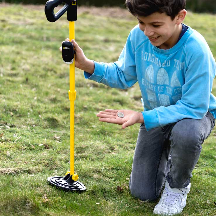 BØRNEMETALDETEKTOR FRA NATIONAL GEOGRAPHIC Smart National Geographic børnemetaldetektor tiltænkt børn fra +8 år. Metaldetektoren har en justerbar længde fra 65 – 83 cm og kan dermed tilpasses det enkelte barn. Med en børnemetaldetektor kan du finde metalobjekter under jorden, uanset om det er på legepladsen, på stranden eller i din egen have. Interessante opdagelser kan gøres mange steder! Betjeningen er meget simpel: Tænd for metaldetektoren og sving søgespolen langsomt frem og tilbage ca. 2 cm over jorden. Hvis der er et metalobjekt under på en dybde på op til 5 cm, vil du høre en signaltone. Metaldetektoren leveres med en aftagelig LED-lampe, så du kan undersøge dine fund selv under dårlige lysforhold. Metaldetektoren kræver 1 stk. 9V-batteri. Medfølger ikke. Køb 9V batteri her: 9V Duracell batteri Specifikationer: Vægt: 460 g Justerbar længde fra 65 – 83 cm Giver lyd når den finder metal LED lampe Størrelse på metaldetektor: 880 x 190 x 140 mm Vægt: 800 gram Batteri påkrævet: 1x 9 V (medfølger ikke) Manual medfølger