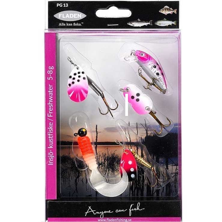 Spinner, jig, blink og wobler. Alt hvad du skal bruge for at lokke sultne aborre og ørreder til. Vægt: 5-8 gram. Passer perfekt til vores børnefiskestænger.