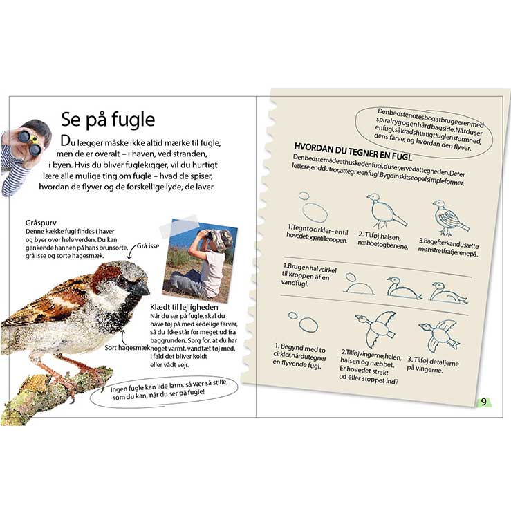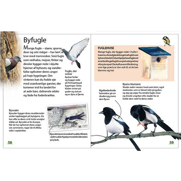 Ud i naturen – fugle Spændende børnebog om fugle fra hele verden. Bogen redegører for en masse interessante emner så som kødædende fugle, havfugle, byfugle og meget mere. Bogen rummer talrige illustrationer, aktiviteter og projektideer med fugle som omdrejningspunkt. ’Ud i Naturen’ er en serie af bøger henvendt specifikt til børn. De er skrevet i et letforståeligt sprog og og er tiltænkt børn +3 år. Bogen måler 15×20 cm.