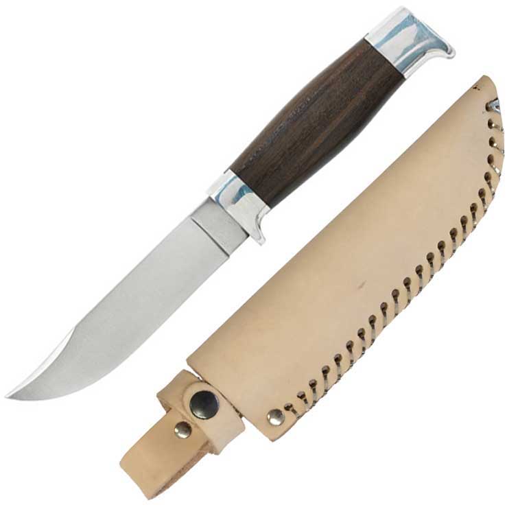 Spejderkniv En stor klassiker indenfor spejderknive Vangedal junior kniv er en slirekniv, hvilket blot betyder at der til kniven medfølger en knivskede. Kniven er produceret i kraftigt rutfrit stål der nemt kan slibes op. Håndtaget er udfærdiget i en af verdens hårdeste træsorter, Pau Santo. Knivskeden er fremstillet i kraftigt læder og kan sættes i bælte. Skeden har tilmed en strop med tryklås som sikrer, at kniven ikke kan falde ud. En ualmindelig gedigen junior kniv, der snildt holder gennem flere generationer! Specifikationer: Bladlængde: 10 cm. Skæfte: Pau Santo træsort Skede i kraftigt læder