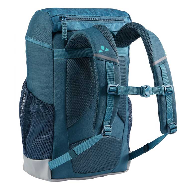 Børnerygsæk i mønster Slidstærk og funktionel børnerygsæk fra Vaude. Rygsækken rummer 10 liter og er tiltænkt børn i børnehavealderen. Rygsækkens vejer 440 g. og måler 38 x 24 x 11 cm. Vaude Puck rygsækken er udstyret med justerbare seler med polstring og en brystrem der sikrer, at tasken sidder tæt og godt på kroppen. Rygstykket er ligeledes polstret og rygsækken har store lommer i begge sider med plads til eksempelvis drikkedunk og madpakke. Og apropos madpakke, så er rygsækken udstyret med en udtagelig siddeplade som barnet kan sidde på, når frokosten skal indtages i skovbunden. Bunden af rygsækken er lavet i et vandtæt materiale så rygsækken kan sættes på regnvåd jord, uden at skiftetøjet risikerer at blive vådt. Dertil er Vaude Puck udstyret med reflekser og et praktisk regnslag. Til rygsækken følger ovenikøbet et forstørrelsesglas så insekterne kan nærstuderes. Rygsækken har flere miljøprædikater, hvilket vidner om at Vaude Puck 10 er produceret med omtanke for klima og miljø såvel som gode arbejdsforhold. Specifikationer: Rumfang: 10 L Vægt: 440 g. Dimensioner: 38 x 24 x 11 cm. PFC-fri imprægnering Materiale: Polyester, heraf halvdelen genanvendt Top lomme og yderlommer Forstørrelsesglas Reflekser Vandtæt bund
