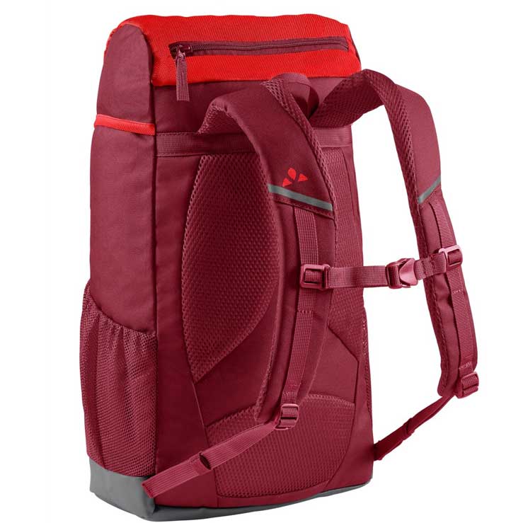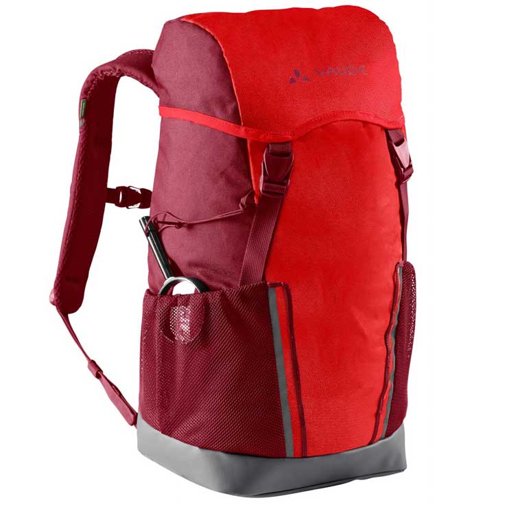 Funktionel og slidstærk børnerygsæk Slidstærk og funktionel børnerygsæk i rød fra Vaude. Rygsækken rummer 14 liter og er tiltænkt børn i børnehaven og indskolingen. Rygsækkens vejer 510 g. og måler 44 x 26 x 20 cm. Vaude Puck rygsækken er udstyret med justerbare seler med polstring og en brystrem der sikrer, at tasken sidder tæt og godt på kroppen. Rygstykket er ligeledes polstret og rygsækken har store lommer i begge sider med plads til eksempelvis drikkedunk og madpakke. Og apropos madpakke, så er rygsækken udstyret med en udtagelig siddeplade som barnet kan sidde på, når frokosten skal indtages i skovbunden. Bunden af rygsækken er lavet i et vandtæt materiale så rygsækken kan sættes på regnvåd jord, uden at skiftetøjet risikerer at blive vådt. Dertil er Vaude Puck udstyret med reflekser og et praktisk regnslag. Til rygsækken følger ovenikøbet et forstørrelsesglas så insekterne kan nærstuderes. Rygsækken har flere miljøprædikater, hvilket vidner om at Vaude Puck 10 er produceret med omtanke for klima og miljø såvel som gode arbejdsforhold. Specifikationer: Rumfang: 14 L Vægt: 510 g. Dimensioner: 44 x 26 x 20 cm. PFC-fri imprægnering Materiale: Polyester, heraf halvdelen genanvendt Top lomme og yderlommer Forstørrelsesglas Reflekser Vandtæt bund