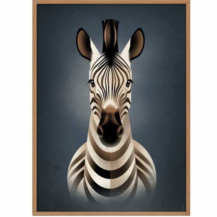 ZEBRA PLAKAT Blandt biologer har man længe diskuteret, hvorfor zebraen har de hvide og sorte striber. Nyeste forskning antyder at farvekombinationen giver færre insektbid, sammenholdt med en pels i brune, sorte og grå nuancer. Zebra plakaten er lavet af den anerkendte illustrator Dieter Braun. Dyrene er gengivet i naturtro farver og former i et spændende grafisk design. Specifikationer: 50 x 70 cm 250g uncoated offset paper 4C-offset printing